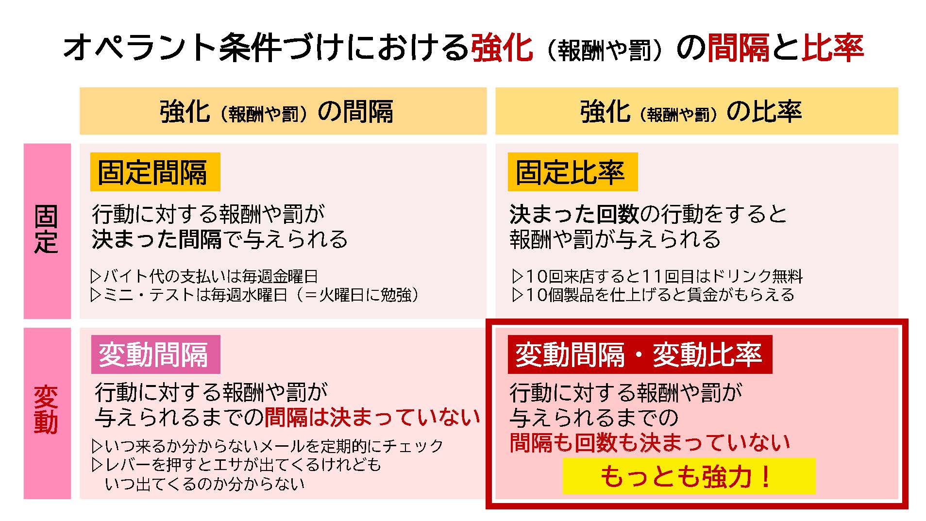 ▶オペラント条件付けにおける強化の間隔と比率(画像)