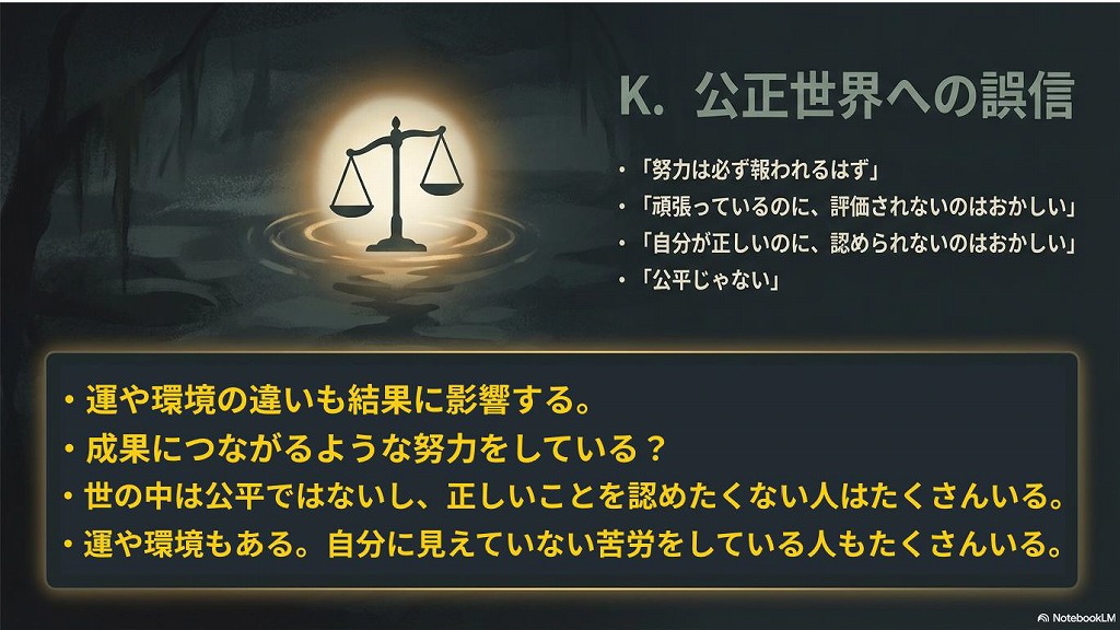 他者との比較  ▶公正世界への誤信  ▶後悔