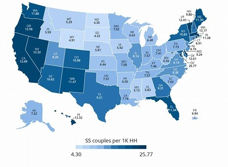 ▶1000婚姻世帯あたりの同性婚世帯数(2020年の国勢調査)